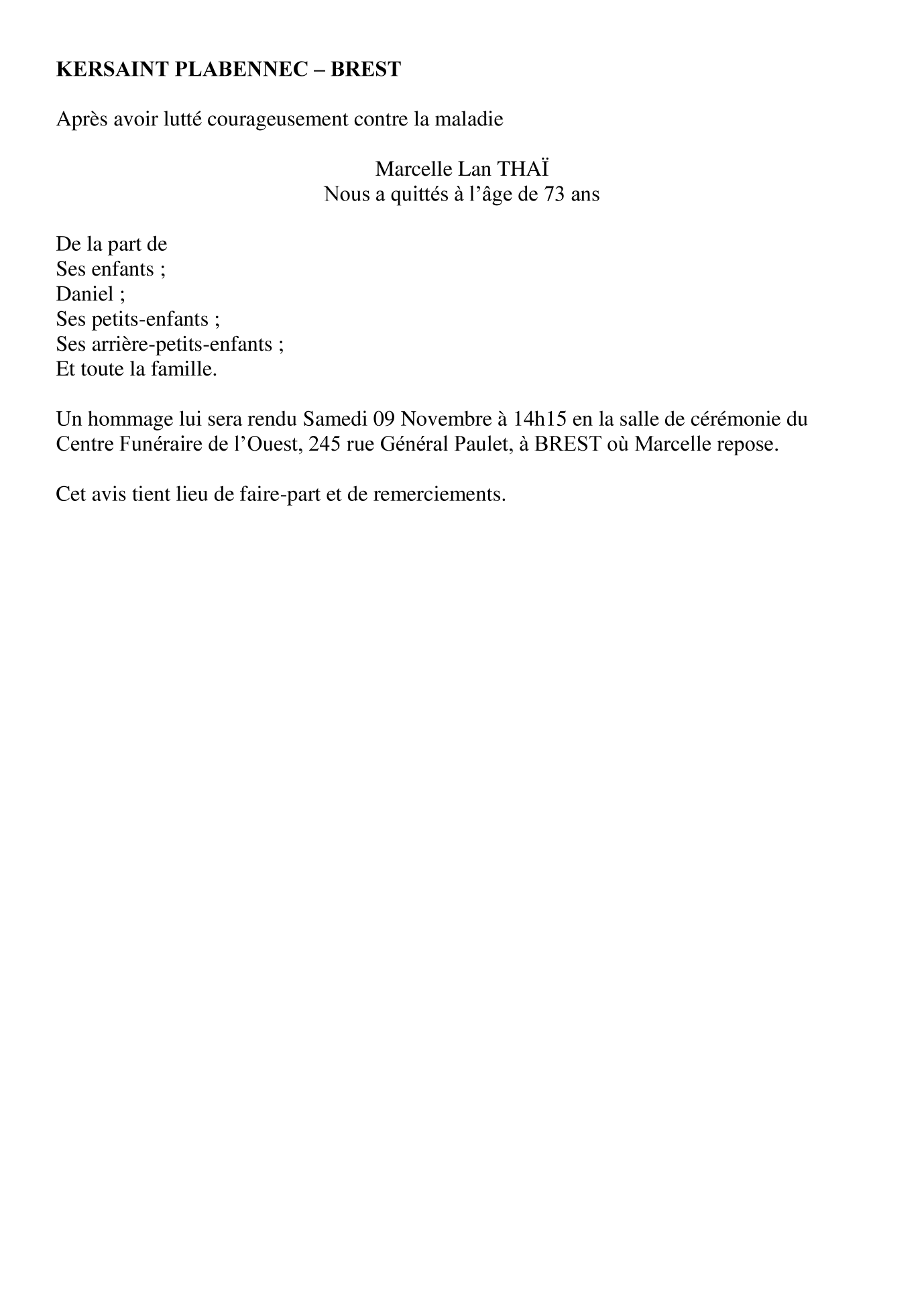 Décédée à Brest