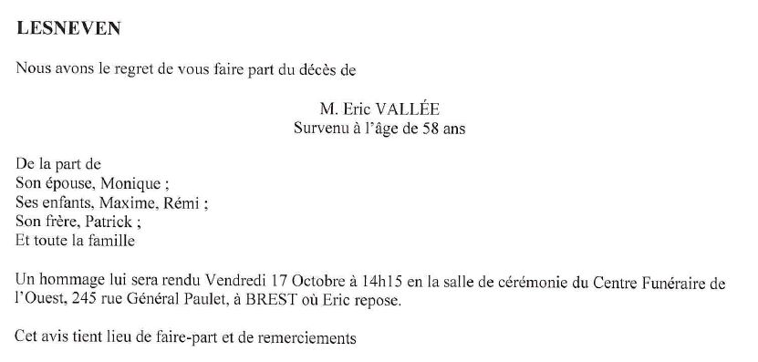 Décédé à Brest (29200, France) le vendredi 10 octobre 2025 à l'âge de 58 ans