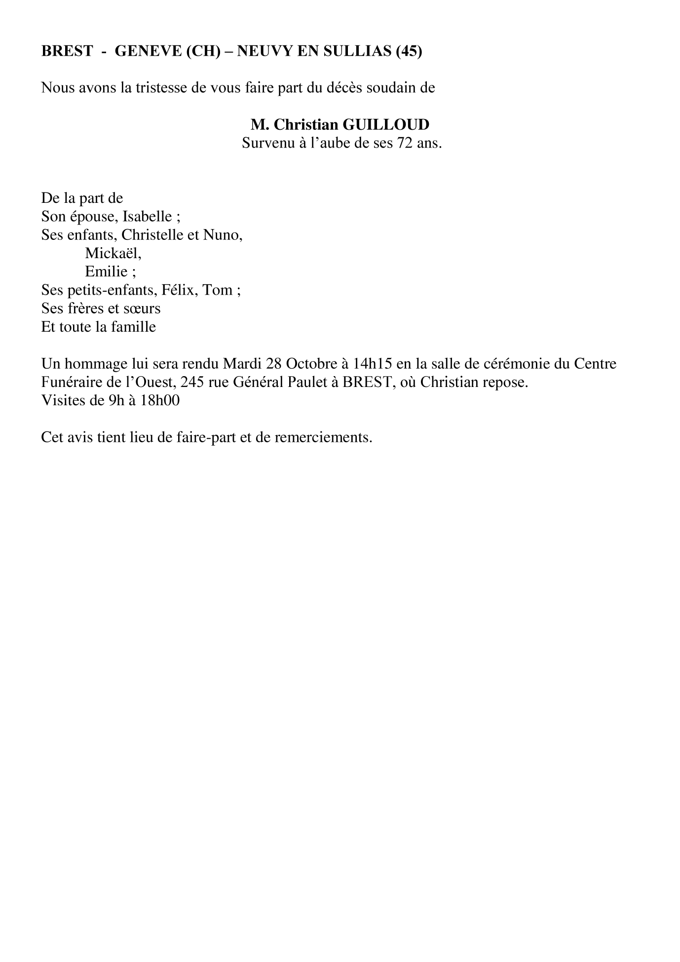 Décédé à Brest (29200, France) le mercredi 22 octobre 2025 à l'âge de 71 ans