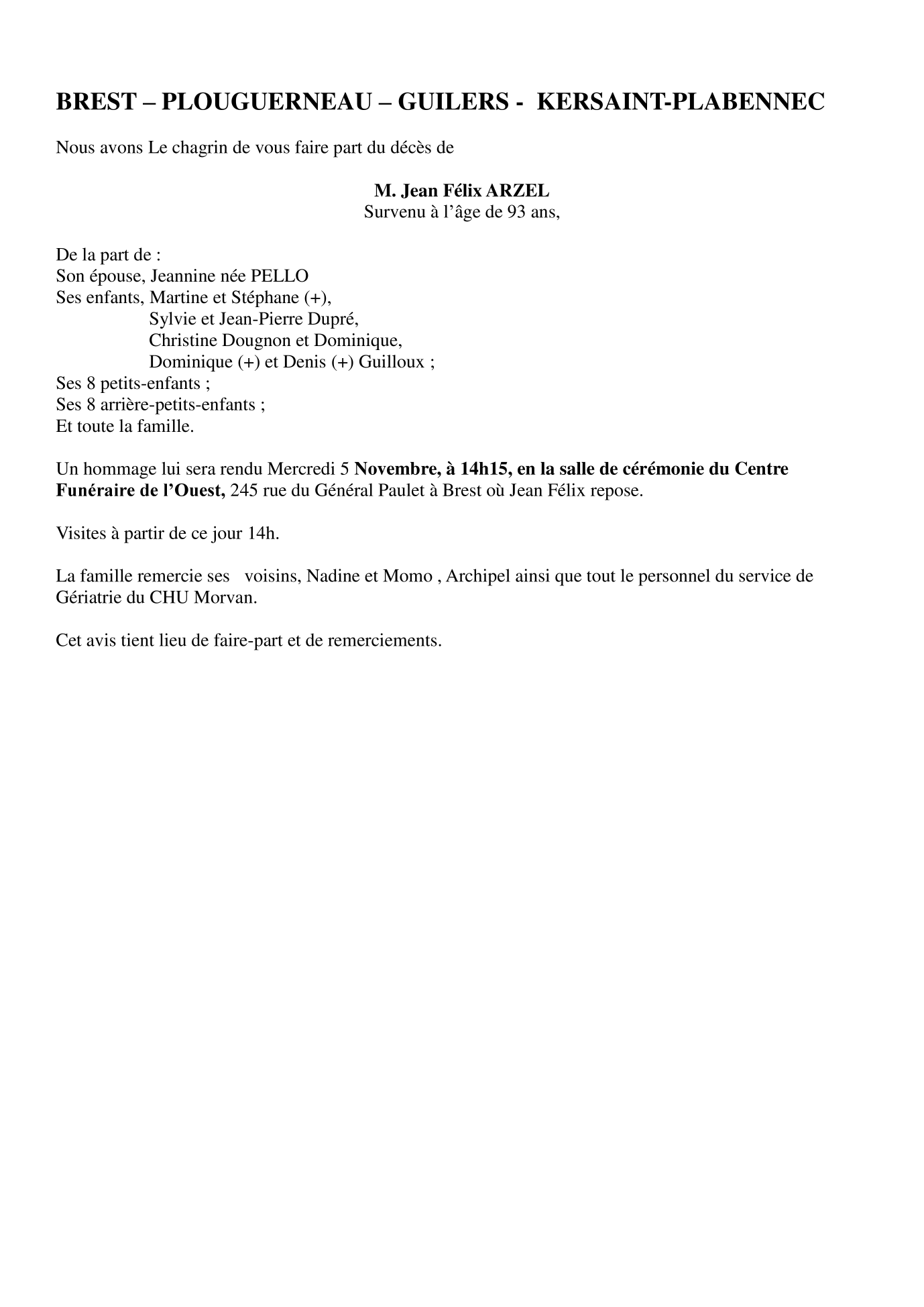 Décédé à Brest (29200, France) le vendredi 31 octobre 2025 à l'âge de 93 ans