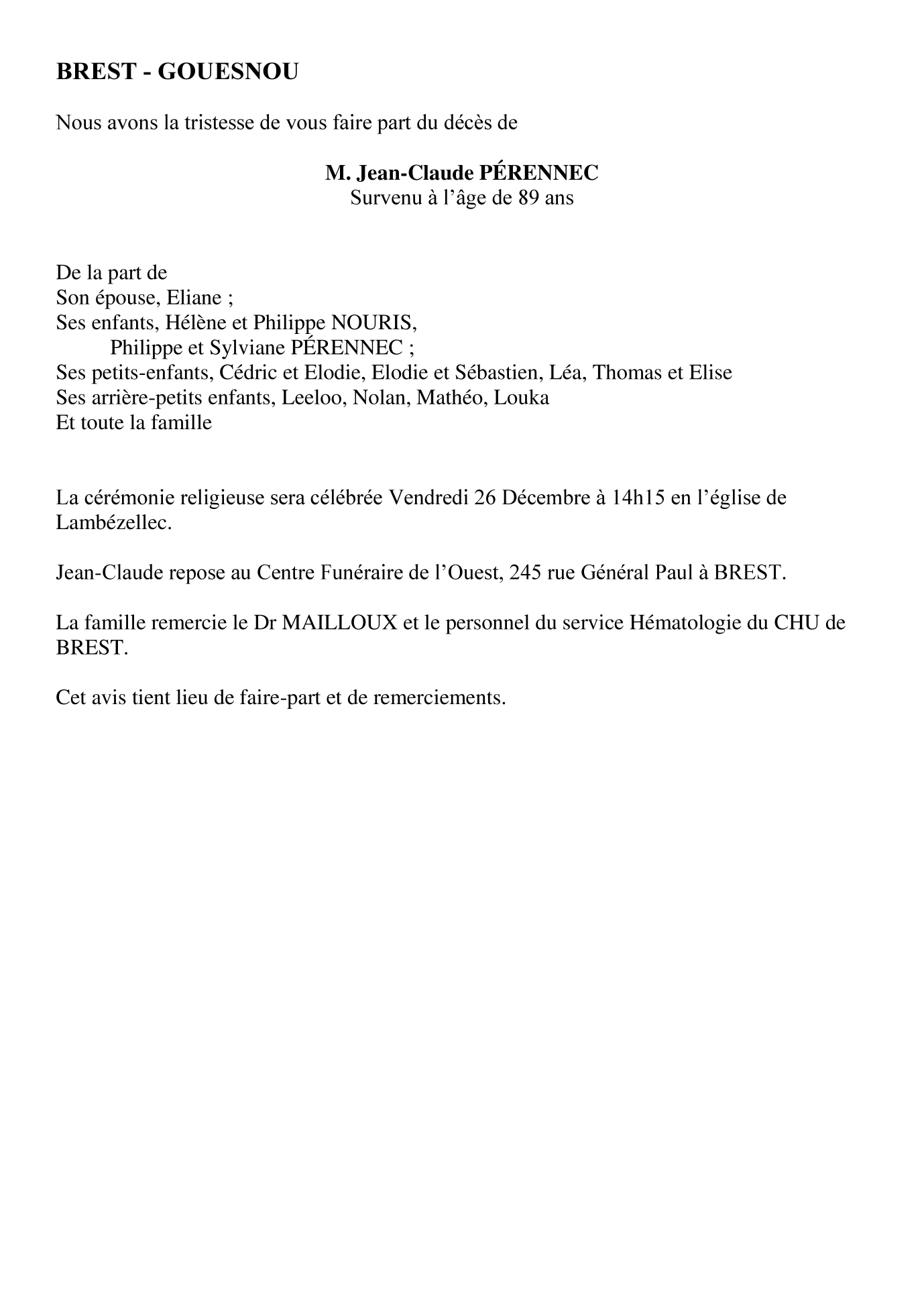 Décédé à Brest (29200, France) le dimanche 21 décembre 2025 à l'âge de 89 ans
