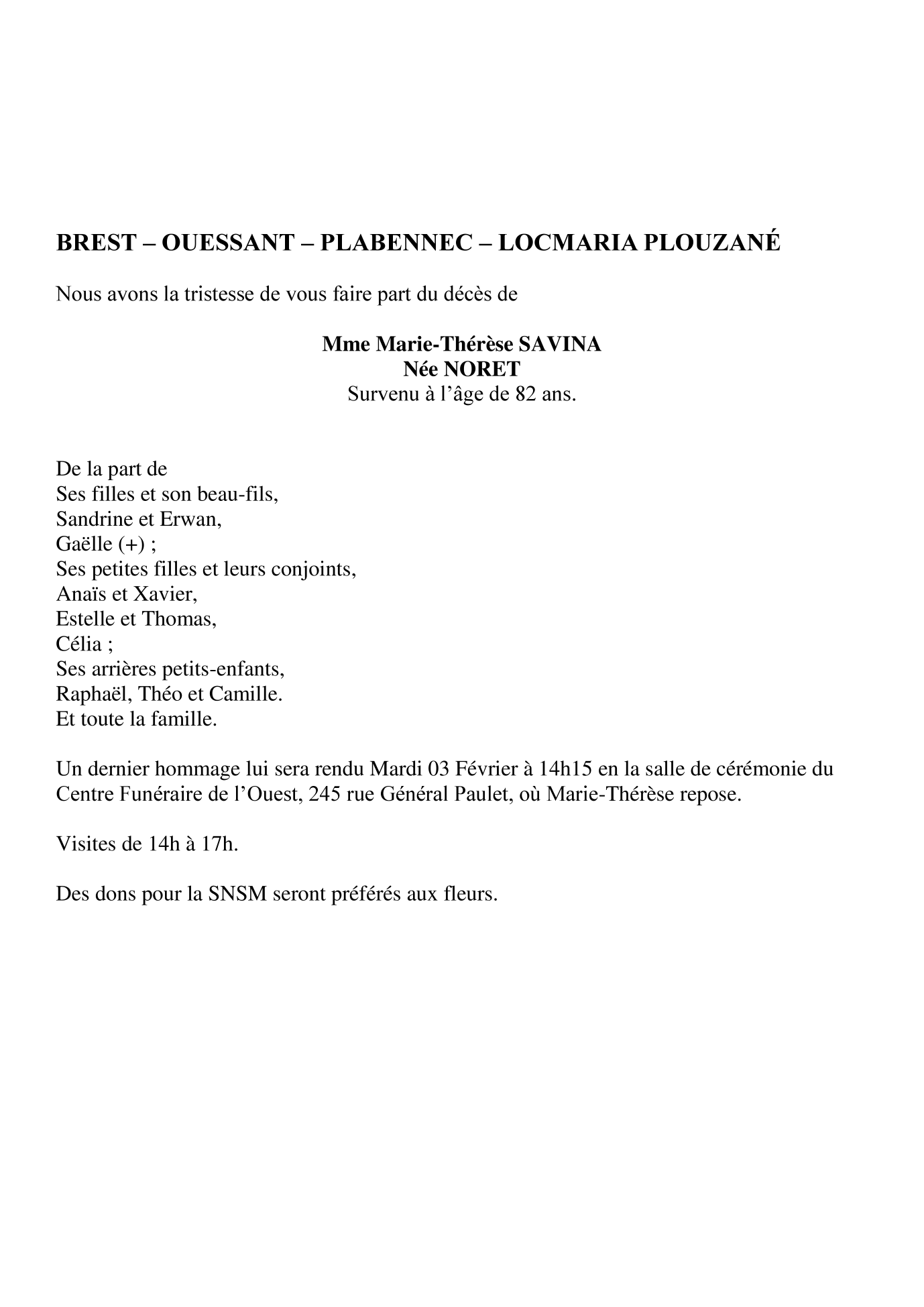 Décédée à Brest