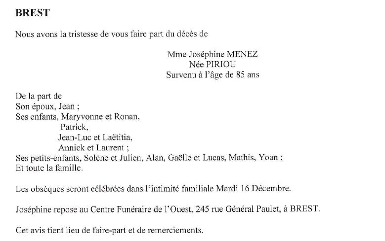 Annonce nécrologique