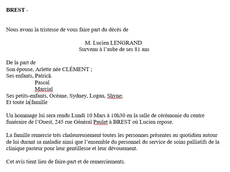 Annonce nécrologique