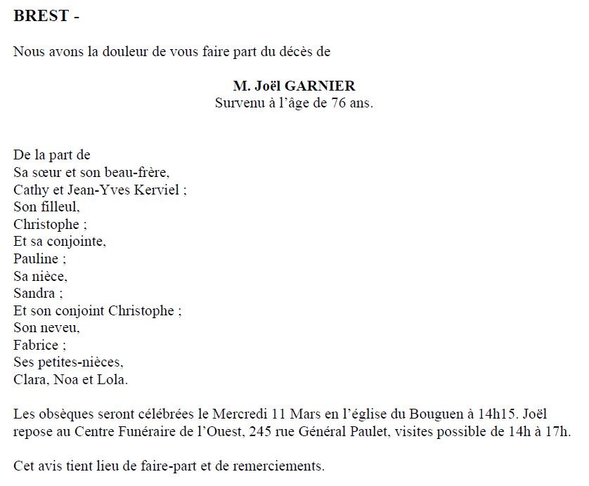 Décédé à Brest