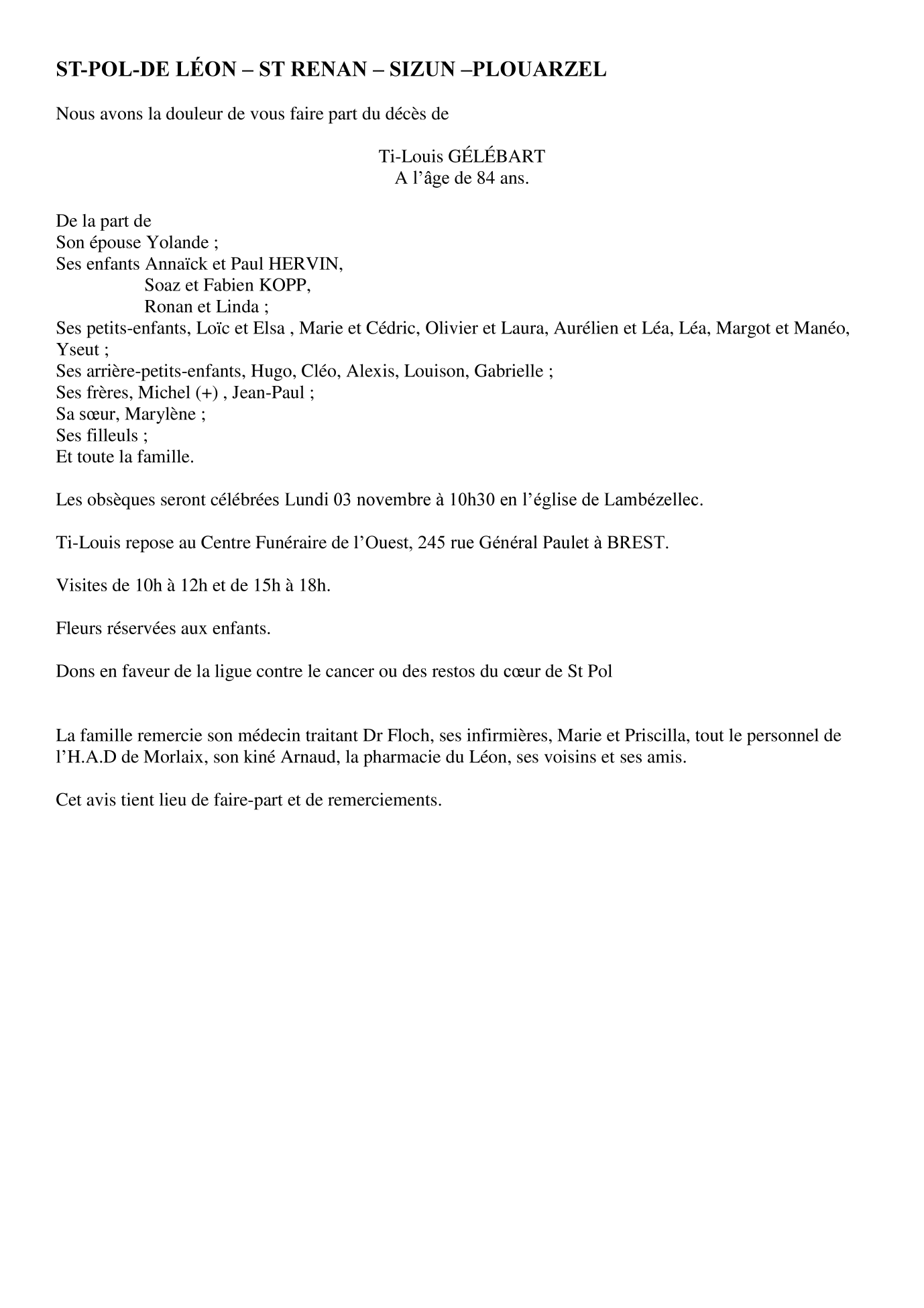 Décédé à Saint-Pol-de-Léon (29250, France) le mardi 28 octobre 2025 à l'âge de 84 ans